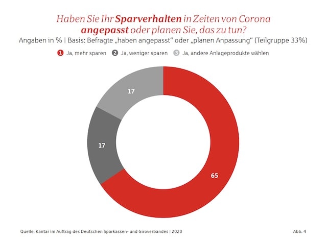 Deutlich größere Auswirkungen hatte die Pandemie auf das Konsumverhalten der Deutschen: Laut eigenen Angaben haben 41 Prozent in den ersten sechs Monaten des Jahres ihren Konsum eingeschränkt – und auch in nächster Zeit will nur jeder Zehnte mehr Geld ausgeben. Viele sorgen jetzt lieber vor: Jeder Dritte gab an, im Zuge der Corona-Krise das Sparverhalten angepasst zu haben, die deutliche Mehrheit möchte dabei mehr Geld zur Seite legen.