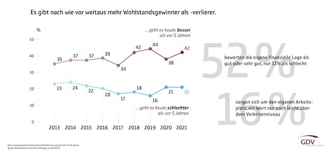 Die Flutkatastrophe dieses Jahres hat vielen aber verdeutlicht, dass derartige Gefahren zunehmen. 76 Prozent der mittleren Generation gehen davon aus, dass es in Zukunft häufiger zu katastrophalen Überschwemmungen kommen wird, wie im Sommer im Ahrtal. Die Ereignisse haben auch bewusst gemacht, dass Deutschland für solche Katastrophen unzureichend gerüstet ist. So fordern drei Viertel der mittleren Generation, dass Deutschland in diesem Bereich nachrüsten muss.