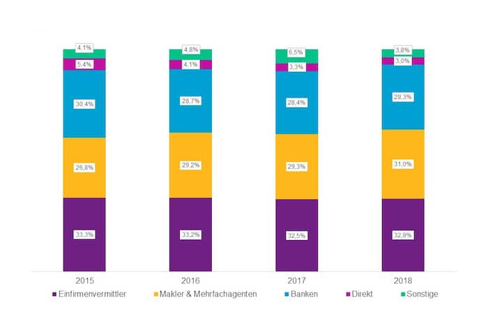 „Die sonstigen Vertriebswege stehen für das fremdgeführte Konsortialgeschäft, insbesondere in der betrieblichen Altersvorsorge. Diese Konsortien waren in 2018 weniger gefragt als im Jahr davor“, so Maaß.