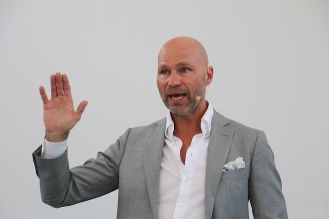 Marketing-Experte Roger Rankel erläuterte in seinem Vortrag Positionierung, Sichtbarkeit und Empfehlung durch Kunden – die drei Geheimnisse der Top-Makler.