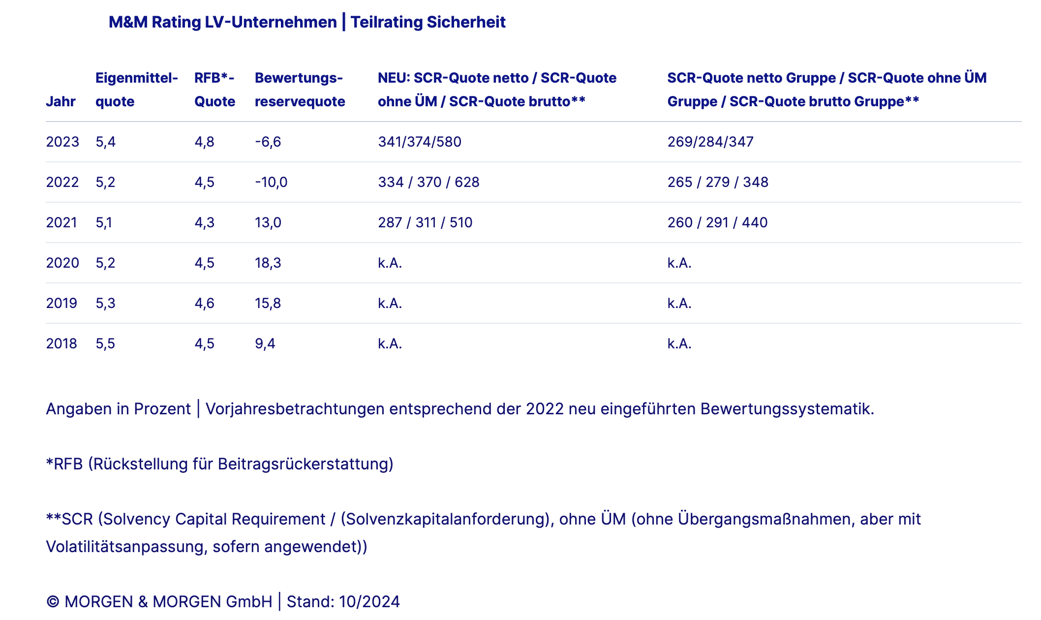 Gesamtranking Lebensversicherer der Rating-Agentur Morgen & Morgen Oktober 2024