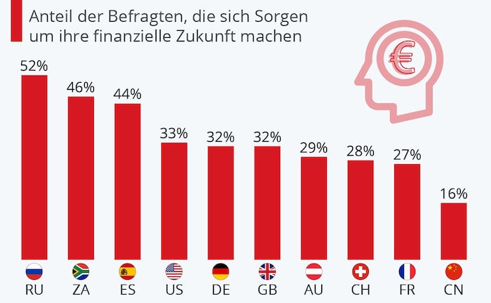 Angesichts steigender Preise und Lebenshaltungskosten weltweit machen sich immer mehr Menschen Sorgen über ihre finanzielle Zukunft. Auch in Deutschland gibt das rund ein Drittel der Bürgerinnen und Bürger an. Das geht aus einem aktuellen Statista Global Consumer Survey hervor.