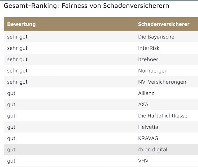 >>> Die Ergebnisse für die einzelnen Sparten finden Sie auf dieser und den kommenden Seiten. Es werden jeweils nur die Versicherer gezeigt, die die Note „sehr gut“ und „gut“ erhielten.