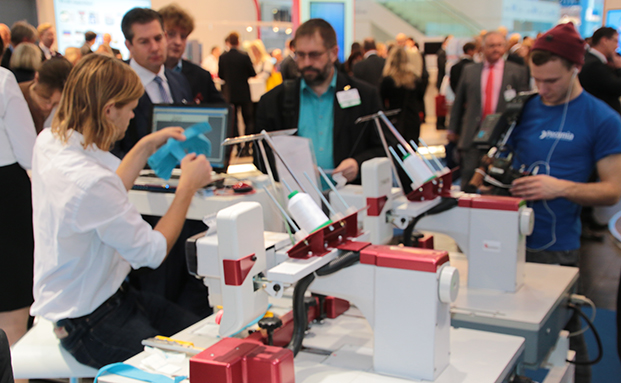 Nähmaschinen am Stand der Barmenia, denn hier ...