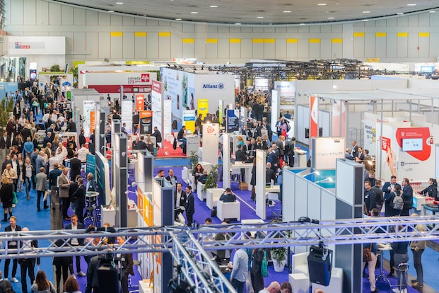 Der Blick in die Halle 4 zeigt emsigen Betrieb an den Ständen und in den Lounges.