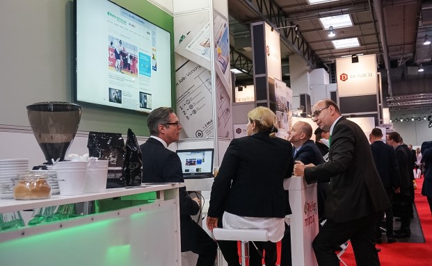 Pfefferminzia-Geschäftsführer Hero Harder (ganz links) und Matthias Heß (ganz rechts) im Gespräch mit Gästen von Barmenia.