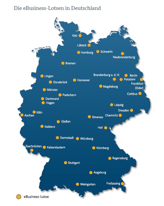 Bislang gibt es in Deutschland 38 Lotsen. Diese rekrutieren sich aus Forschungsprojekten und anderen Organisationen wie den regionalen Industrie- und Handelskammern. Die Vergütung erfolgt über Drittmittel der Regierung. Wer sich informieren will, wird auf folgender Karte fündig. Dort hinterlegt sind Infos zu den Lotsen, zu deren Social-Media-Auftritten und Webseiten. Hier geht es zur interaktiven Karte.