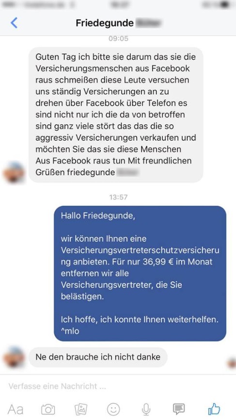 Facebook-Post von Friedegunde: Veröffentlicht vom Facebook-Kundendienst. © Facebook.com