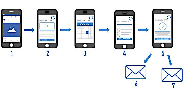 Nehmen wir einen Termin-Funnel, welcher darauf abzielt, dass (potenzielle) Kunden von sich aus und auf Basis eines automatisierten Prozesses einen Termin mit Ihnen vereinbaren.
