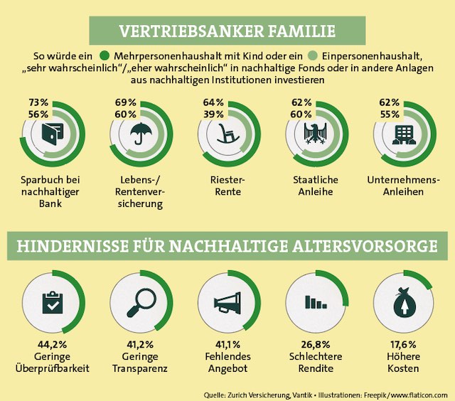Auch Zurich-Vorstand Barna sieht hier noch großen Nachholbedarf. „Über die Möglichkeit, auch bei fondsgebundenen Produkten nachhaltig vorzusorgen, müssen wir unsere Kunden verstärkt informieren“, sagt er. „Hierzu haben unsere Vertriebspartner spezielle Schulungen und umfassende Informationen für die Kundenberatung erhalten.“ Die Ansatzpunkte sind jedenfalls da. Denn mit Nachhaltigkeit würden die meisten Kunden immer noch hauptsächlich Themen wie Umwelt- beziehungsweise Klimaschutz verbinden.