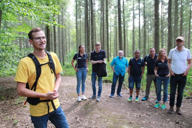 An der Waldakademie Wohlleben in Wershofen startet der Rundgang durch den Wald mit Josef Eichler, Förster in der Waldakademie Wohlleben (links im Bild).