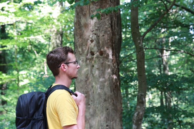 Totholz im Wald, wie hier ein toter Stamm im Hintergrund, ist wichtig im Wald. Vögel, wie der Specht, Insekten und viele Kleinstlebewesen benötigen solche Lebens- und Nahrungsquellen. „Abgestorbene Baumstämme und Äste saugen sich wie Schwämme mit Wasser voll und sorgen damit ebenso wie die Verdunstungsfeuchte der Bäume über deren Blätter für das besondere Waldklima, das auch für Menschen so wohltuend ist“, erklärt Josef Eichler.