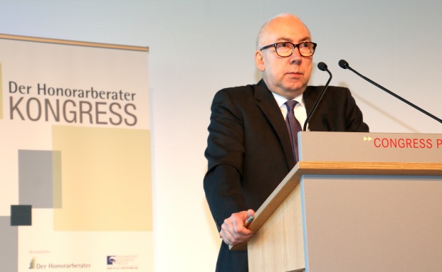 Key Speaker Gerd Billen, Staatssekretär für Verbraucherschutz im Bundesjusitzministerium hielt die Eröffnungsrede. „Wir wollen die Honorarberatung als echte Alternative fördern“, sagte Billen. „Dazu brauchen wir Lösungen, die in die Realität passen.“
