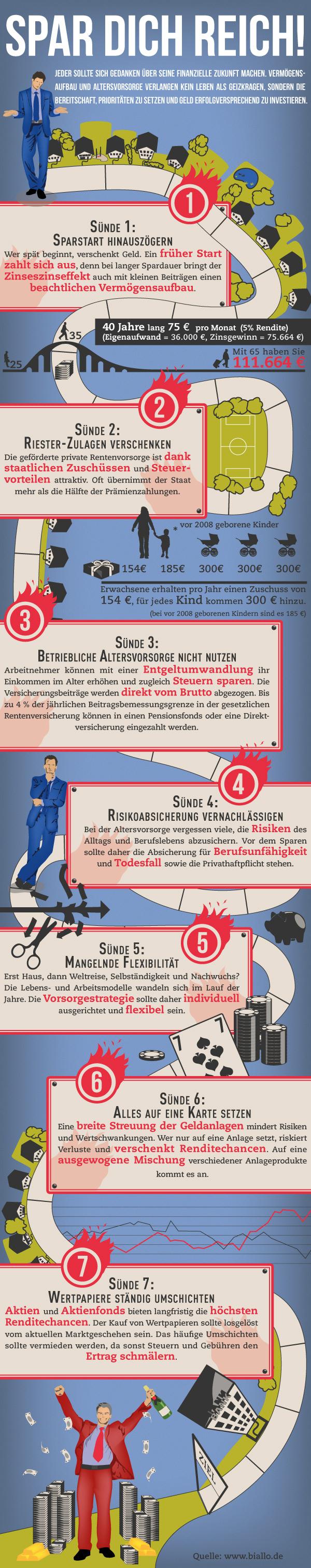 Eine der Sünden: Zu spät mit der Geldanlage anfangen. © Screenshot biallo.de