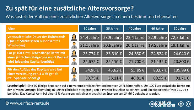 Je später man anfängt, desto teurer wird die zusätzliche Altersvorsorge. © einfach-rente.de