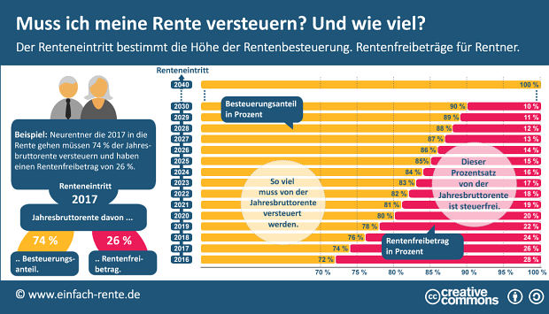 Die Infografik zeigt, ab wann man auf Renten Steuern zahlen muss. © einfach-rente.de