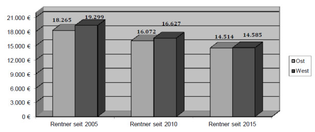 Wirft man nun einen Blick auf die Standardrente 2015 (15.611 Euro in den alten und 14.429 Euro in den neuen Bundesländern brutto pro Jahr) erkennt man, dass insbesondere Neurentner leichter von einer Steuerpflicht betroffen sind.