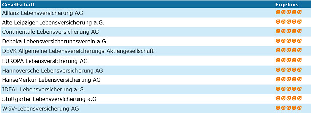 Die Höchstpunktzahl von „fünf Eulenaugen“ erreichten folgende Versicherer.