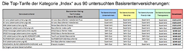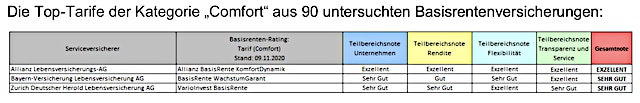 Das Institut für Vorsorge und Finanzplanung (IVFP) hat sich in einem aktuellen Rating 90 Rürup-Versicherungen vorgenommen. Die Einteilung der Tarife erfolgte dabei in die Kategorien „Klassik“, „Klassik Plus“, „Fondsgebunden mit/ohne Garantie“, „Comfort“ und „Indexpolicen“.