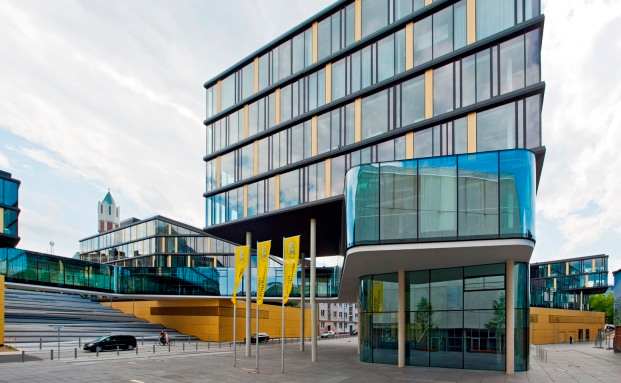 Luftaufnahme der Kölner Zentrale der HDI am Rheinufer: Welchen Platz der Versicherer bei der Kundentreue einnimmt, erfahren Sie in unserer Bildstrecke. © HDI