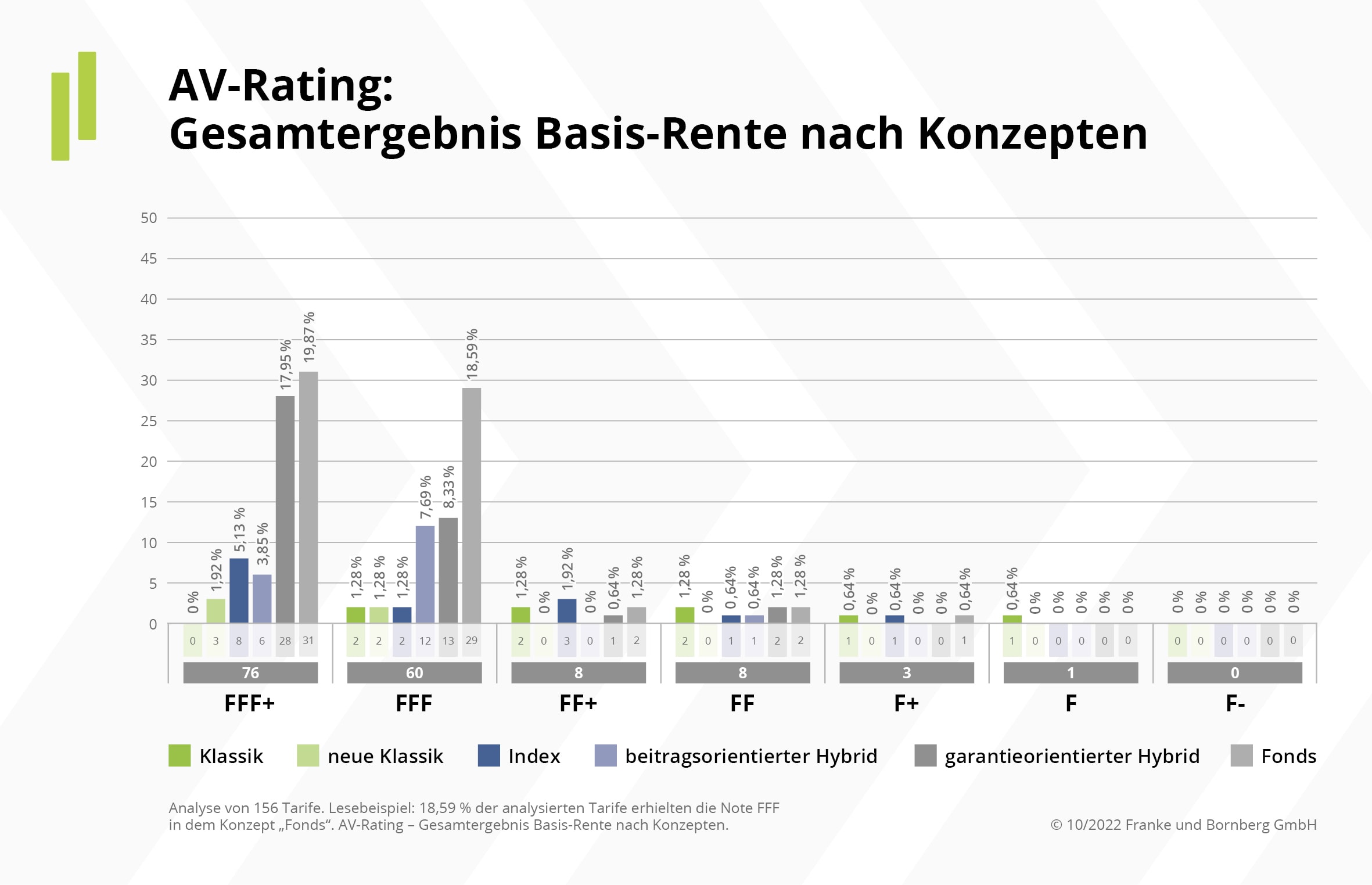 2021 verkauften die Versicherer 101.100 neue Basis-Renten-Verträge – das sei das beste Ergebnis im Neugeschäft seit 2014, heißt es von Franke und Bornberg. Die Zahl der Anbieter sei 2022 von 46 auf 43 Versicherer gesunken.