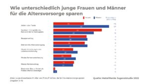 Zwischen jungen Frauen und Männern herrschen oft große Gräben, wenn es um ihre Sparanstrengungen für die Altersvorsorge geht, wie die aktuelle „Metall Rente Jugendstudie 2022“ zeigt.