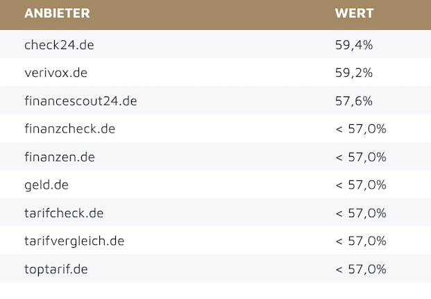 Der Serviceerlebnis-Wert für Vergleichsportale liegt derzeit bei 54,0 Prozent. Branchengewinner ist Check24.de.