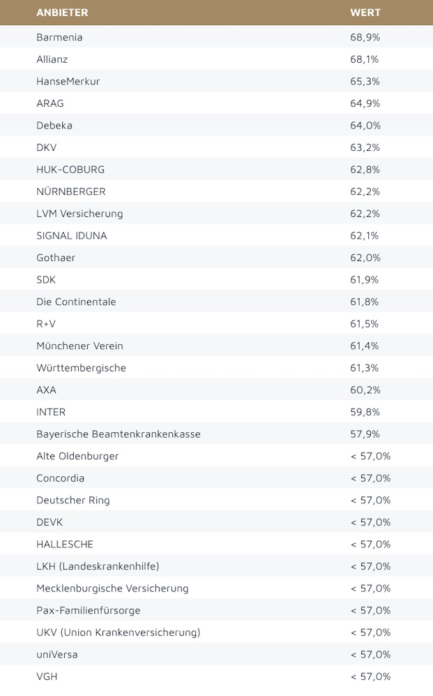 Der Serviceerlebnis-Wert für Private Krankenversicherer liegt derzeit bei 59,2 Prozent. Branchengewinner ist Barmenia.