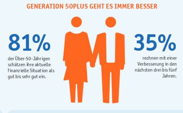 Vier von fünf Angehörigen der Generation 50Plus bezeichnen ihre finanzielle Situation weiterhin als „gut“ oder sogar „sehr gut“. Damit ist ihre Zufriedenheit im Vergleich zum Vorjahr gleich geblieben – im Gegensatz zur finanziellen Zuversicht in der Gesamtbevölkerung, wie aus der Studie „Liquidität 50Plus“ im Auftrag von Easy-Credit hervorgeht.
