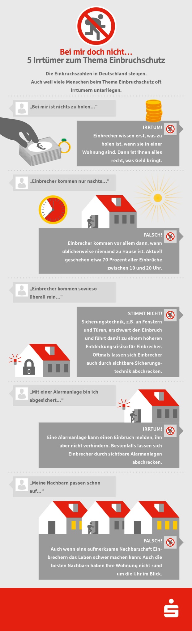Bei mir ist nichts zu holen? Einbrecher kommen nur nachts? Nö, das stimmt so nicht. Die Infografik zeigt die gängigsten Irrtümer von Kunden zum Thema Einbruchschutz.