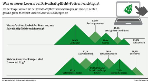 Als Sieger der Umfrage ging mit 28,8 Prozent der Nennungen die Haftpflichtkasse Darmstadt hervor. Ihr Produkt „PHV Einfach Komplett“ lag mit 12,9 Prozent Zustimmung knapp vor dem Klassik-Garant- Exklusiv-Tarif der VHV (11,8 Prozent).